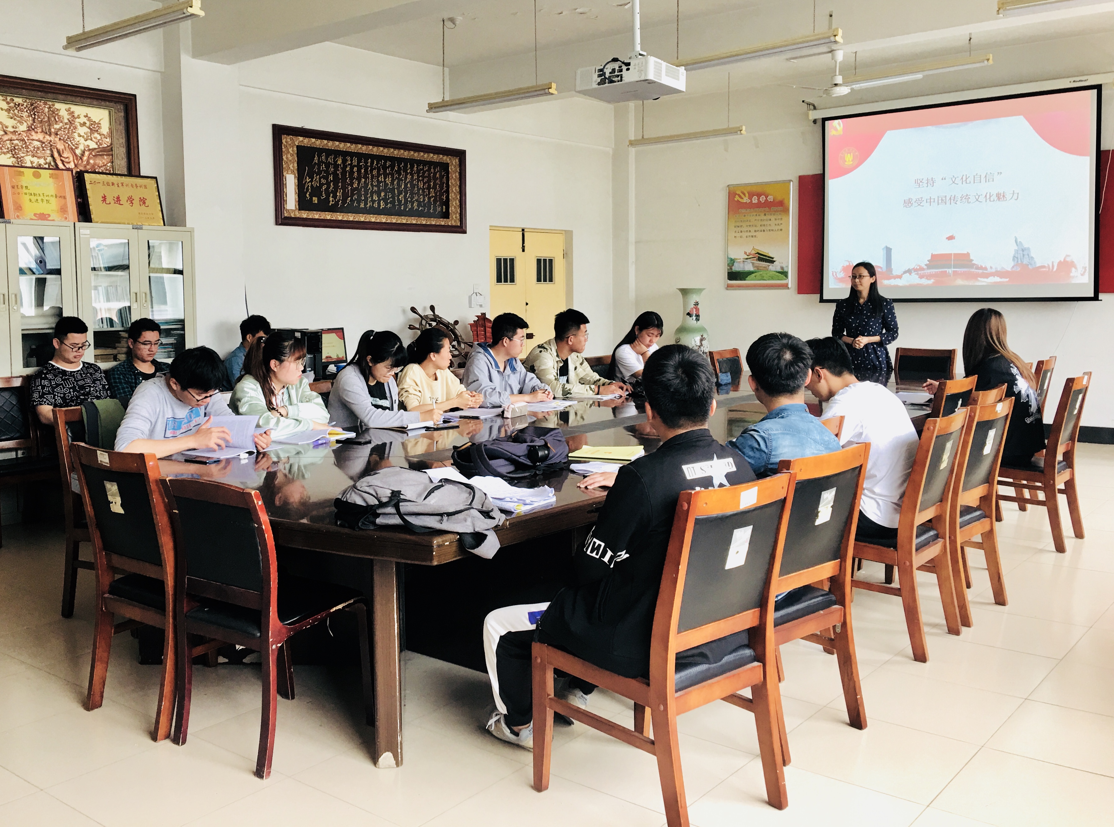 5月18日,金年会jinnianhuicom辅导员宋颖芳以《坚定文化自信,继承优秀传统文化》为题,在生物楼会议室向同学们讲授专题党课。文化自信不仅关系到自身文化的繁荣兴盛,而且决定着一个国家、一个民族的前途命运。我们的文化自信,很重要的来源就是中华民族优秀的传统文化。了解、学习、传播、继承优秀传统文化是当代大学生的责任与义务,作为入党积极分子和发展对象,更应该自觉增强传承和弘扬中华民族传统文化的责任感和使命感,坚定文化自信,继承弘扬优秀传统文化。