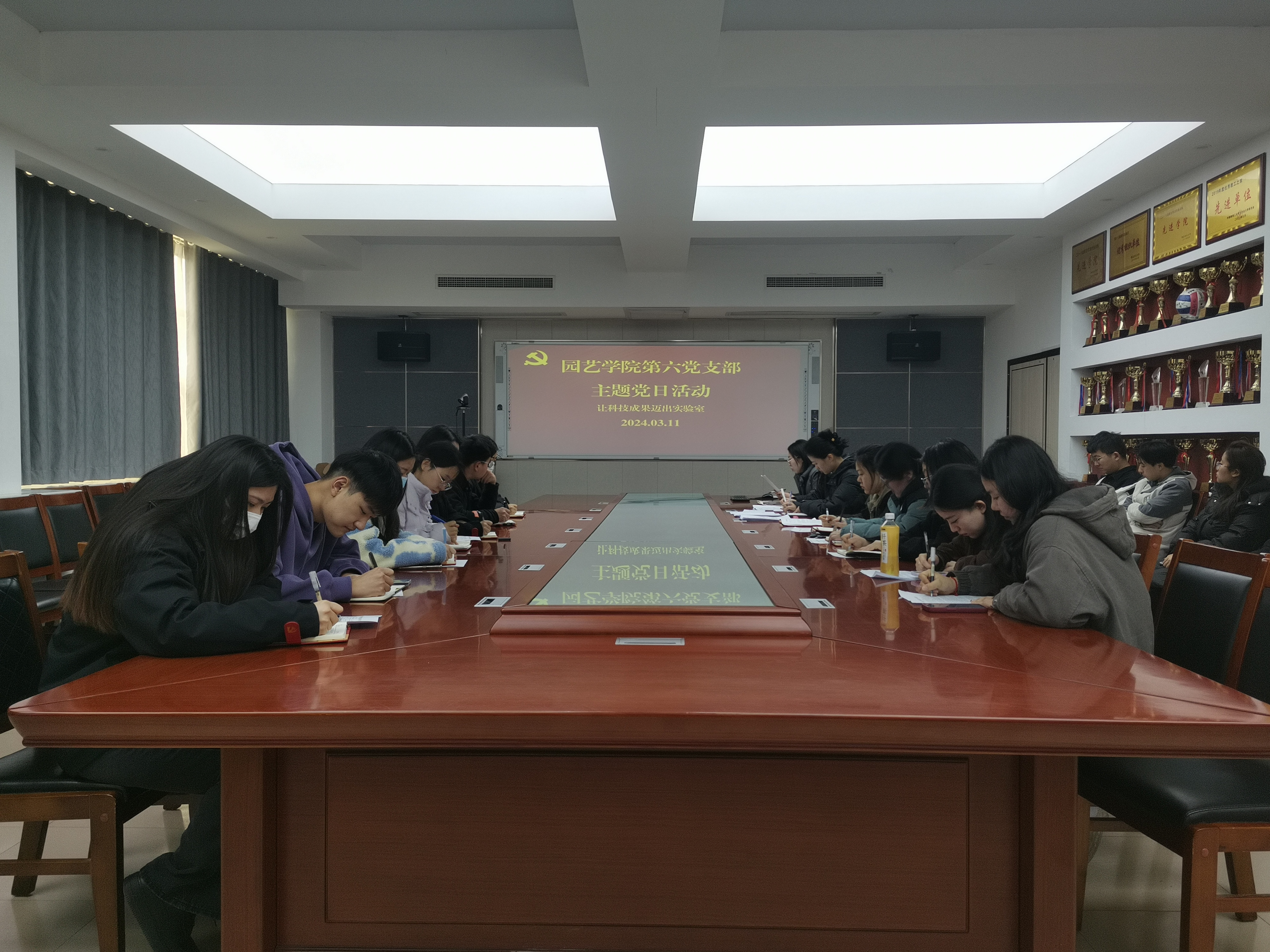 3月11日上午,金年会jinnianhuicom第六(学生)党支部在生物楼N306开展“让创新成果迈出实验室”主题党日活动,支部全体党员参加会议。