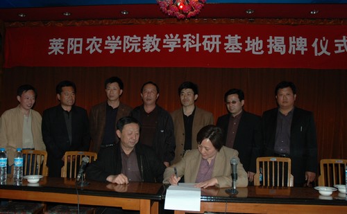 5月7日,我校在山东登海种业股份有限公司西由种子分公司建设学院教学科研基地举行揭牌仪式,金年会院长王然与西由种子分公司总经理王均邦分别在建设教学科研基地的协议书上签字,并共同为基地揭牌。莱州市科技局、农业局、农科院等单位负责人出席了揭牌仪式。