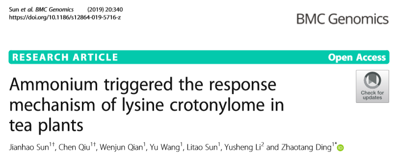 Jianhao Sun, et al., 2019, Ammonium triggered the response mechanism of lysine crotonylome in tea plants, BMC Genomics. https://doi.org/10.1186/s12864-019-5716-z
