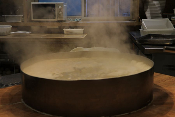 16日上午凌晨四点,厨房后厨选材备料时,实践队成员针对朝天锅的选材、制作过程、顾客评价等方面做了视频、音频记录并采访了店里的已经工作了二十余年的老员工,据她介绍:“朝天锅的制作技艺,按照一代代人传下来的标准要求,再加上时代变迁与发展因素,无论是在选材、制作过程还是对火候、时间掌握,我们都做到最严谨,朝天锅已经是渗入到潍坊本地人骨子里的东西了,不能把味道丢失,还要把这个味道传承下去。”