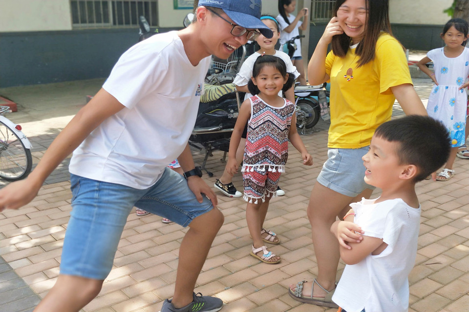 充满欢声笑语的课间时光,志愿者和孩子们一起玩“123木头人”的游戏,孩子们脸上扬起的笑容是对志愿者们最大的鼓励。
