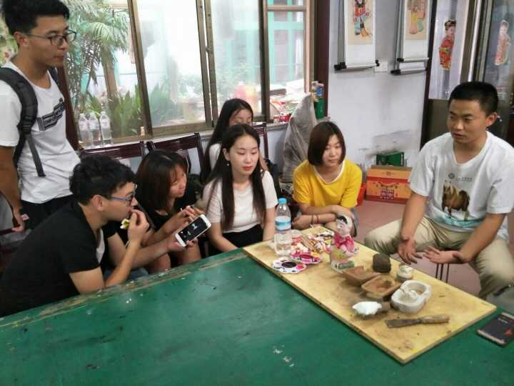 为增进对传统泥塑文化的了解,增强对非遗文化的的认知,7月16日金年会jinnianhuicom“高密三绝,寻梦非遗”实践团来到山东省潍坊市高密聂家庄进行泥塑文化的寻访,实践期间参观了泥塑文化展馆,并与泥塑文化传承人聂鹏进行了详细交谈。