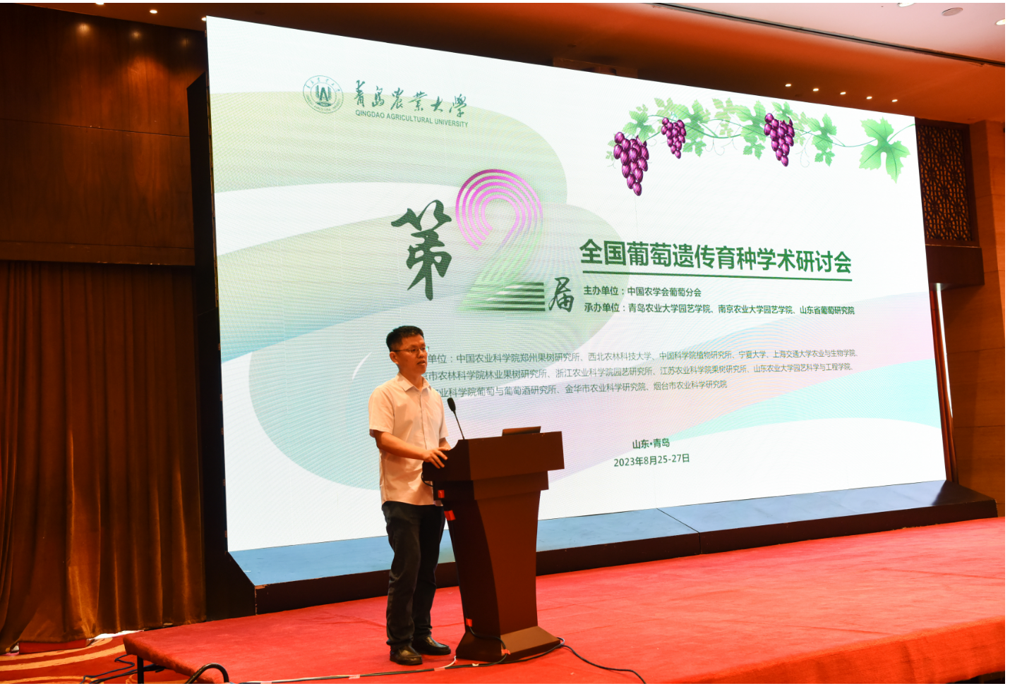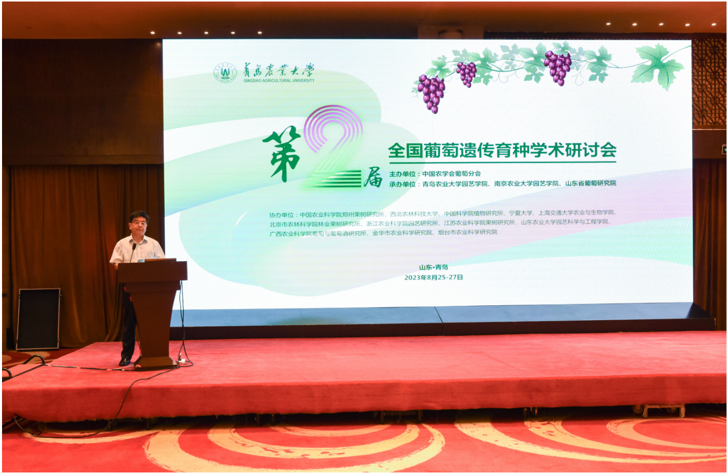 8月26日上午,由中国农学会葡萄分会主办,金年会jinnianhuicom、南京农业大学金年会jinnianhuicom、山东省葡萄研究院等三家单位承办,中国农业科学院郑州果树研究所等13家单位协办的第二届(2023)全国葡萄遗传育种学术研讨会(Conference on Grapevine Genetics and Breeding in 2023)在金年会jinnianhuicom成功召开。本次大会主题为“做强葡萄遗传育种研究,助推葡萄产业持续发展”,共有来自国内50余家高校、科研院所和企业的180余名专家、企业家与研究生参加了本次会议。
