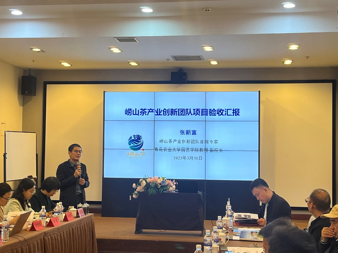 崂山茶产业高质量发展论坛上,崂山区农业农村局王妮妮局长首先向参加验收会的专家们介绍了崂山区政府对崂山茶的扶持政策,崂山茶区域公用品牌打造以及近些年取得的系列成绩,同时对崂山茶产业创新团队在崂山茶产业高质量发展中发挥的作用给予了充分肯定。由崂山区农业农村局联合我校发起的崂山茶产业集群党建联盟把党组织建在产业链上,受到了与会专家的高度评价。崂山茶作为山东省入选“2022中国地理标志农产品品牌声誉前100位”农产品中的唯一茶叶类代表也给专家组留下了深刻的印象。崔秀峰副部长特别提及“崂山茶产业创新团队”创新了茶科技,弘扬了茶文化,推进了茶产业,很好地践行了习近平总书记“三茶融合”的重要指示。在肯定崂山茶近些年取得成效的同时,专家们也对未来崂山茶产业发展献言献策,例如,如何继承创新崂山茶种植模式,如何培育适宜崂山区种植的无性系茶树良种,如何推进科研成果、技术规程的推广、落实、落地等。华祥苑茶业股份有限公司林少君总监结合华祥苑“国礼茶”的营销案例,对崂山茶文化宣传、品牌推介、产品营销发表了自己的看法,并与崂山区农业农村局达成了初步合作意向。