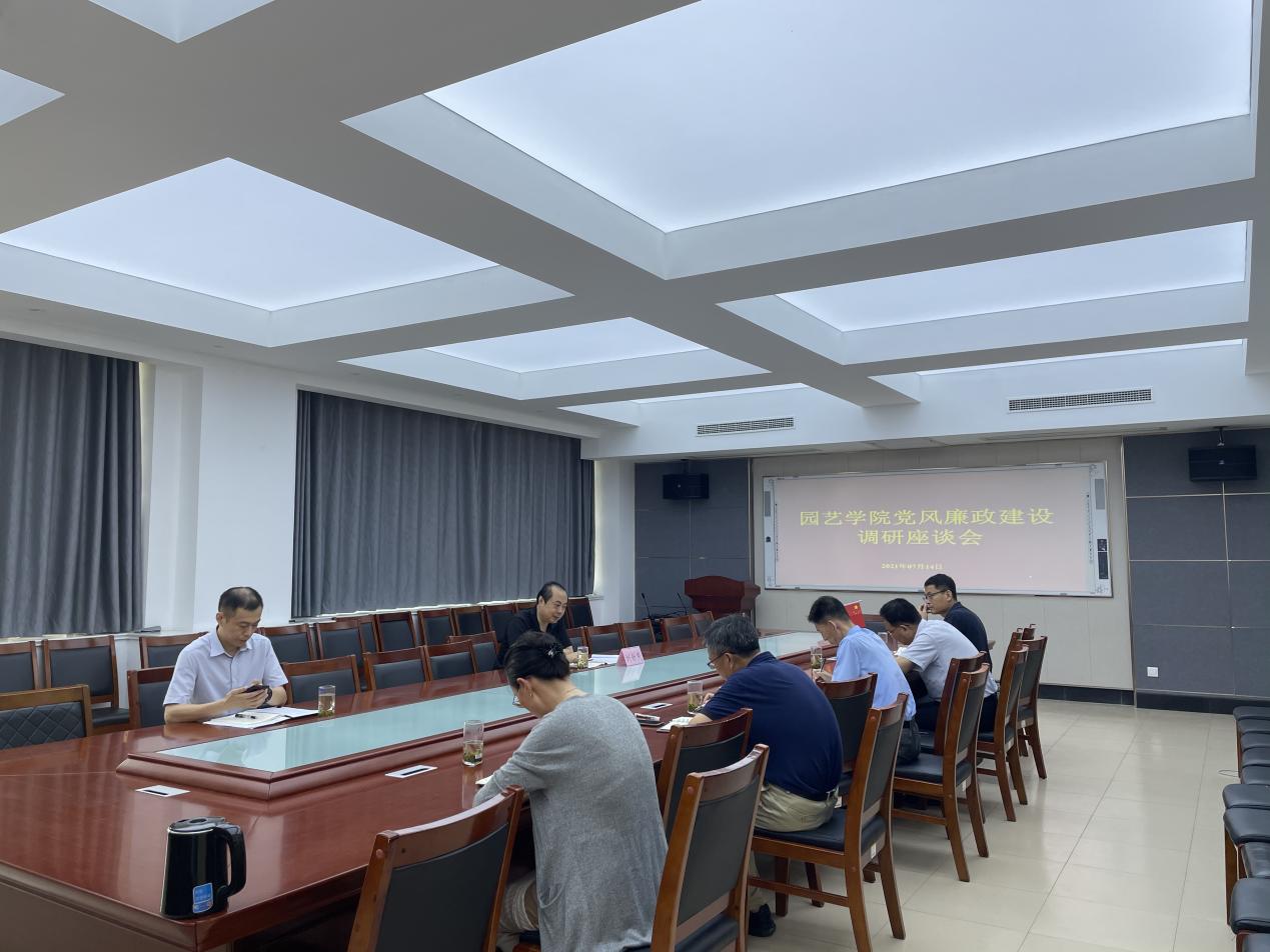 7月14日,金年会jinnianhuicom校长刘新民到园艺学院进行调研,听取了学院党风廉政建设工作情况汇报,对学院党风廉政建设工作进行指导。学院党政领导班子成员参加会议。