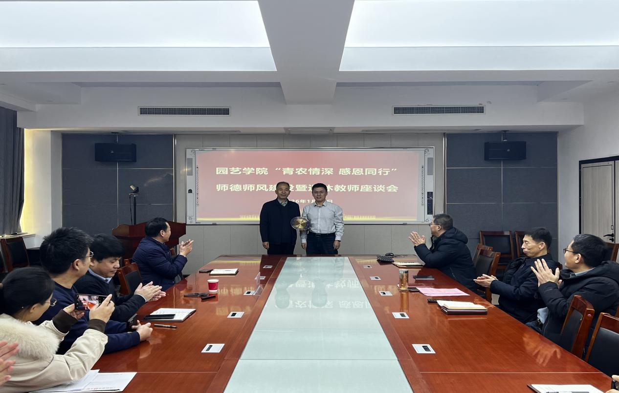 会上,原永兵教授回顾了在学校学习、工作和生活的难忘岁月,分享了自己投身教育事业的初心故事与执教生涯的深刻感悟,并勉励学院全体教工:做人要做正直善良的人;做事要认真严谨、一丝不苟;做学问要以国际视野,站在学科前沿,解决产业问题,引领产业发展,注重学科交叉,培养学生开拓创新和自我发展的能力和潜力,潜心治学、不为名利。院长张忠华对原永兵教授为学院发展所付出的辛勤劳动和贡献表示感谢,深情回顾了原永兵教授为学院建设发展和人才培养事业所作出的奠基性、开拓性贡献,并表示原永兵教授是学院事业发展的宝贵财富,他希望原永兵教授能够一如既往地关心、支持学院发展,将丰富的育人经验与多年从教心得悉心相传,照亮青年教师前程,助力学院擘画未来。与会教师纷纷发言交流,分享了与原永兵教授相处共事的温暖点滴与感人故事。大家纷纷表示,将继续传承发扬老教师的优良教风和奉献精神,坚守立德树人初心,扛牢强农兴农使命,切实弘扬教育家精神,为学校高质量发展做出应有贡献。