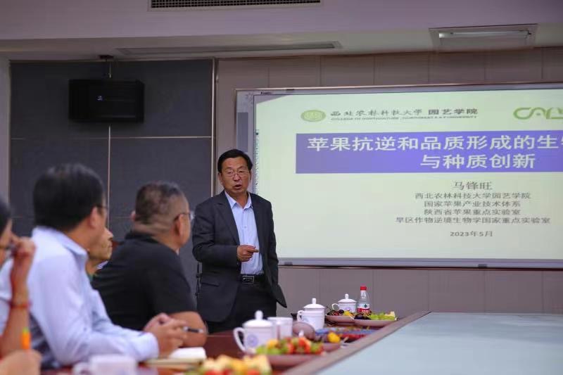 为学习贯彻习近平新时代中国特色社会主义思想,推动主题教育走深走实,5月11日下午,国家苹果体系首席科学家、西北农林科技大学教授马锋旺于生物楼N306讲授关于苹果抗逆和品质形成的生物学基础与种质创新学术报告,金年会jinnianhuicom院长张忠华教授、原永兵教授、张玉刚教授、郑晓东教授,学院部分果树学师生代表参加本次报告会。会议由张忠华教授主持。