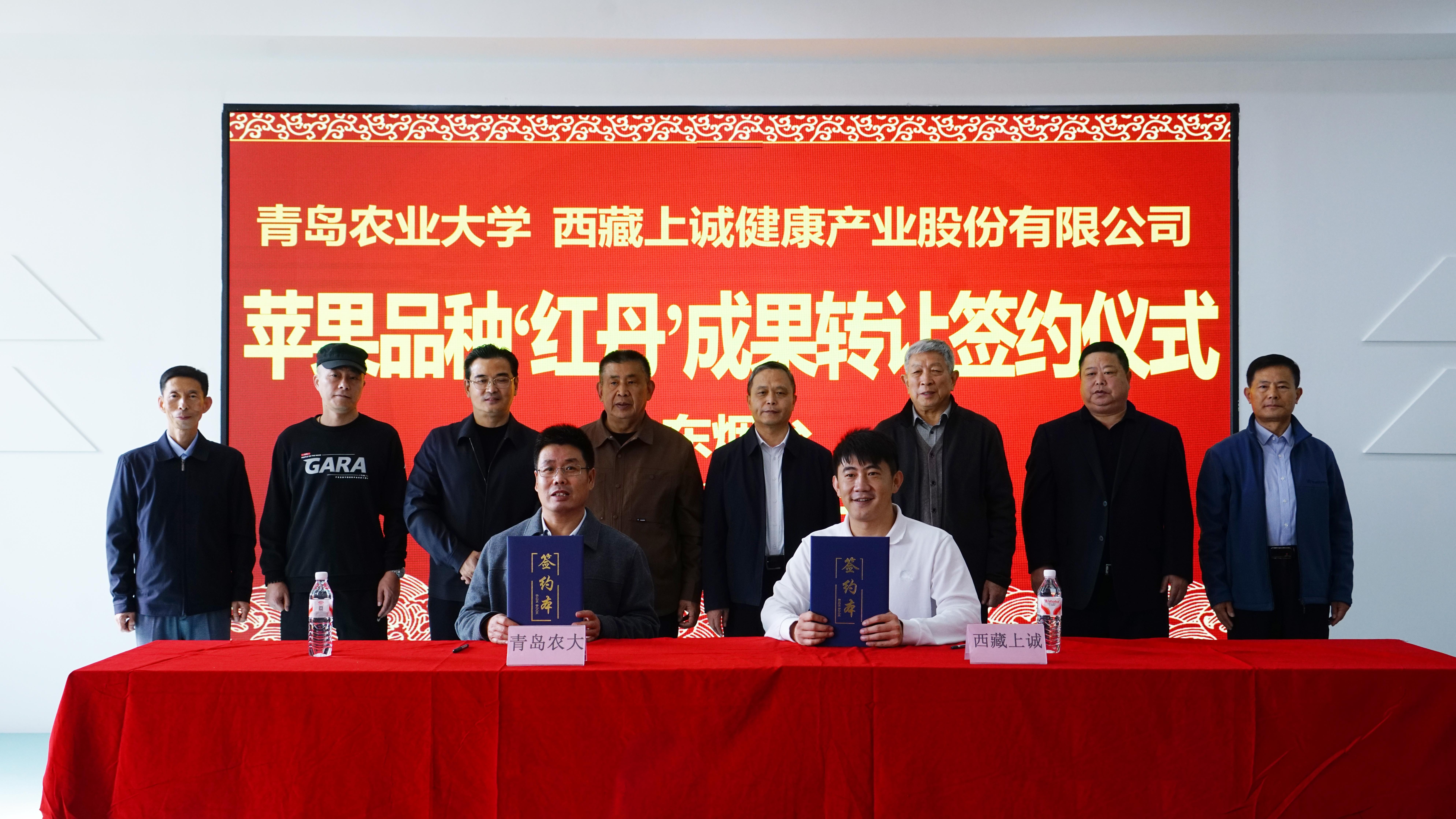 11月5日,金年会jinnianhuicom苹果新品种“红丹”以200万元转让西藏上诚健康产业股份有限公司。签约仪式在烟台大山果业开发有限公司会议室举行。校党委委员、副校长郭尚敬代表学校致辞。烟台市农业农村局副局长吴晨光,烟台大山果业开发有限公司董事长林成欣,西藏上诚健康产业股份有限公司总经理林传清,苹果育种团队专家戴洪义教授等30多人出席仪式。