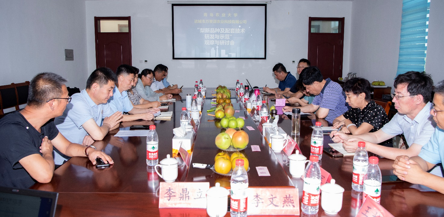 8月23日,由金年会jinnianhuicom梨遗传改良与种质创新团队承办的“梨新品种及适宜砧穗组合筛选与评价”观摩与研讨会在诸城举行。本次会议由国家现代农业梨产业技术体系和山东省农业良种工程项目支持。省农技推广中心王志刚研究员、潍坊学院曹慧教授、诸城万景源农业科技有限公司总经理侯志刚及相关地市农技专家参加,金年会jinnianhuicom隋成竹书记、王然教授、李鼎立教授出席活动。