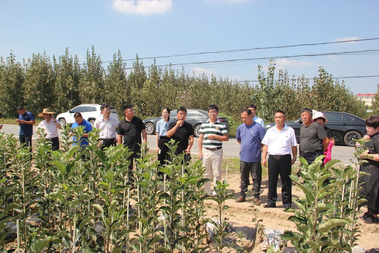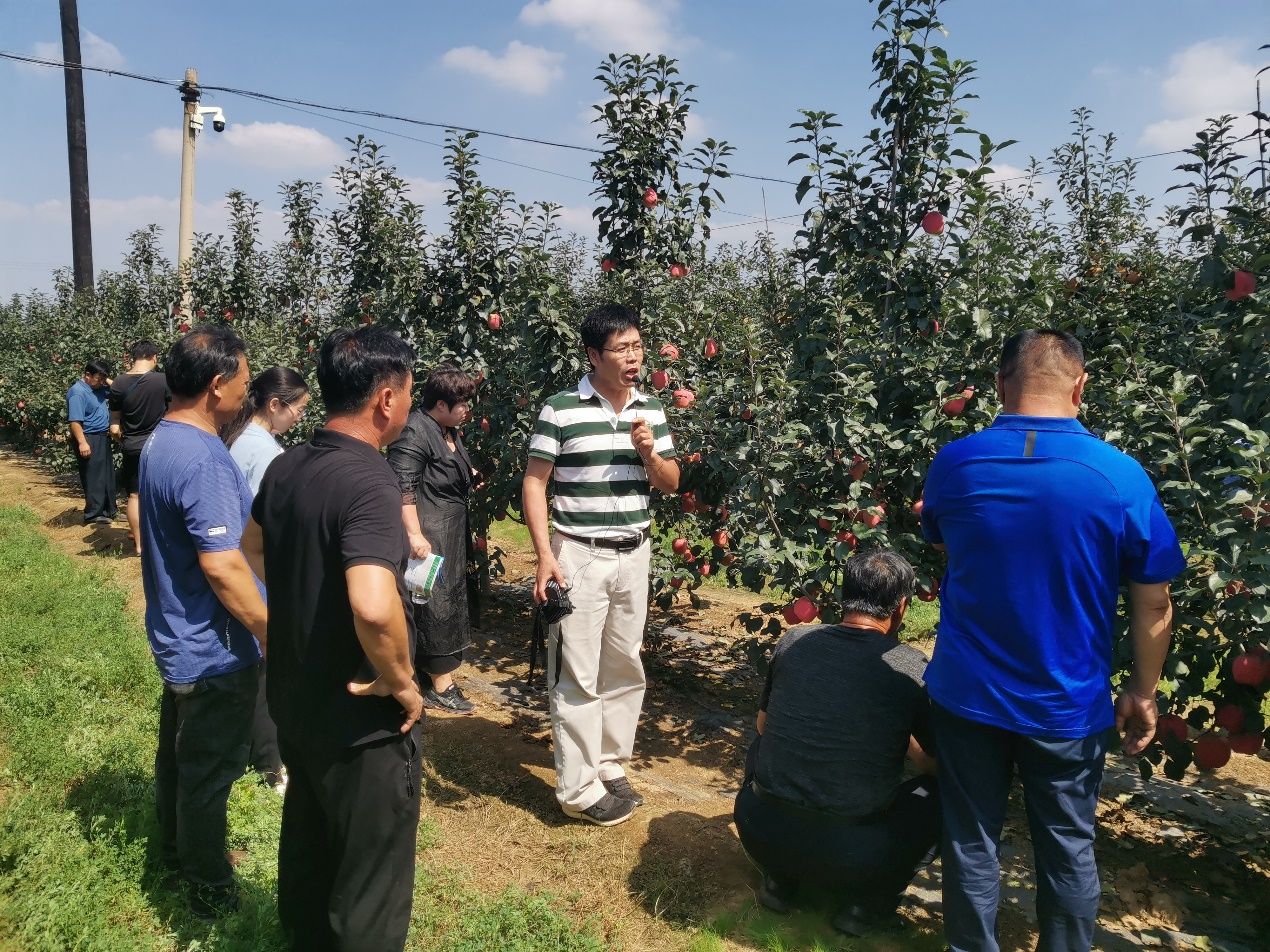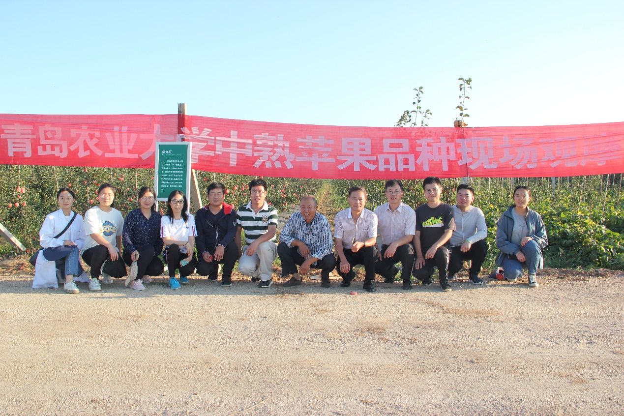 9月15日,金年会jinnianhuicom在学校苹果育种基地莱州大自然园艺科技有限公司和龙口市果树研究所组织召开了中熟苹果品种‘福九红’现场观摩会。莱州市农业农村局杨鲁光站长,平度市李园街道7个片区的党支部书记及苹果种植大户和合作社技术人员、金年会jinnianhuicom乡村振兴研究院张正明主任、金年会jinnianhuicom师生及苹果育种团队人员和莱州、龙口当地果树技术人员共30余人参加了本次观摩会。