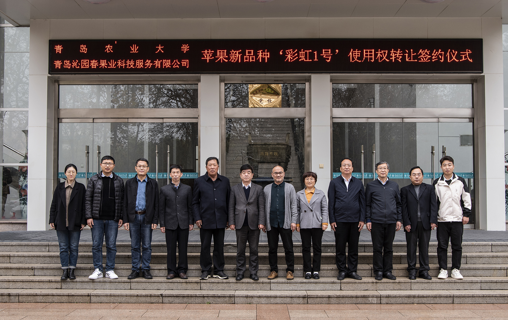 团队负责人王彩虹教授向与会人员介绍了转让成果的主要研发经历和性状特征。‘彩虹1号’是由我校金年会jinnianhuicom果树生物技术及种质创新团队历经20余年培育的优质中熟苹果新品种,2015年通过山东省农作物品种审定委员会审定,2019年获国家植物新品种保护权。生产试验表明,该品种具有果实易着色、肉质细腻、脆甜爽口、香味浓郁的显著特点,其树体表现易成花、连续结果能力好、抗病性强。本次活动中,金年会jinnianhuicom向青岛沁园春果业科技服务有限公司独家转让苗木经营权,转让金额为296万元。