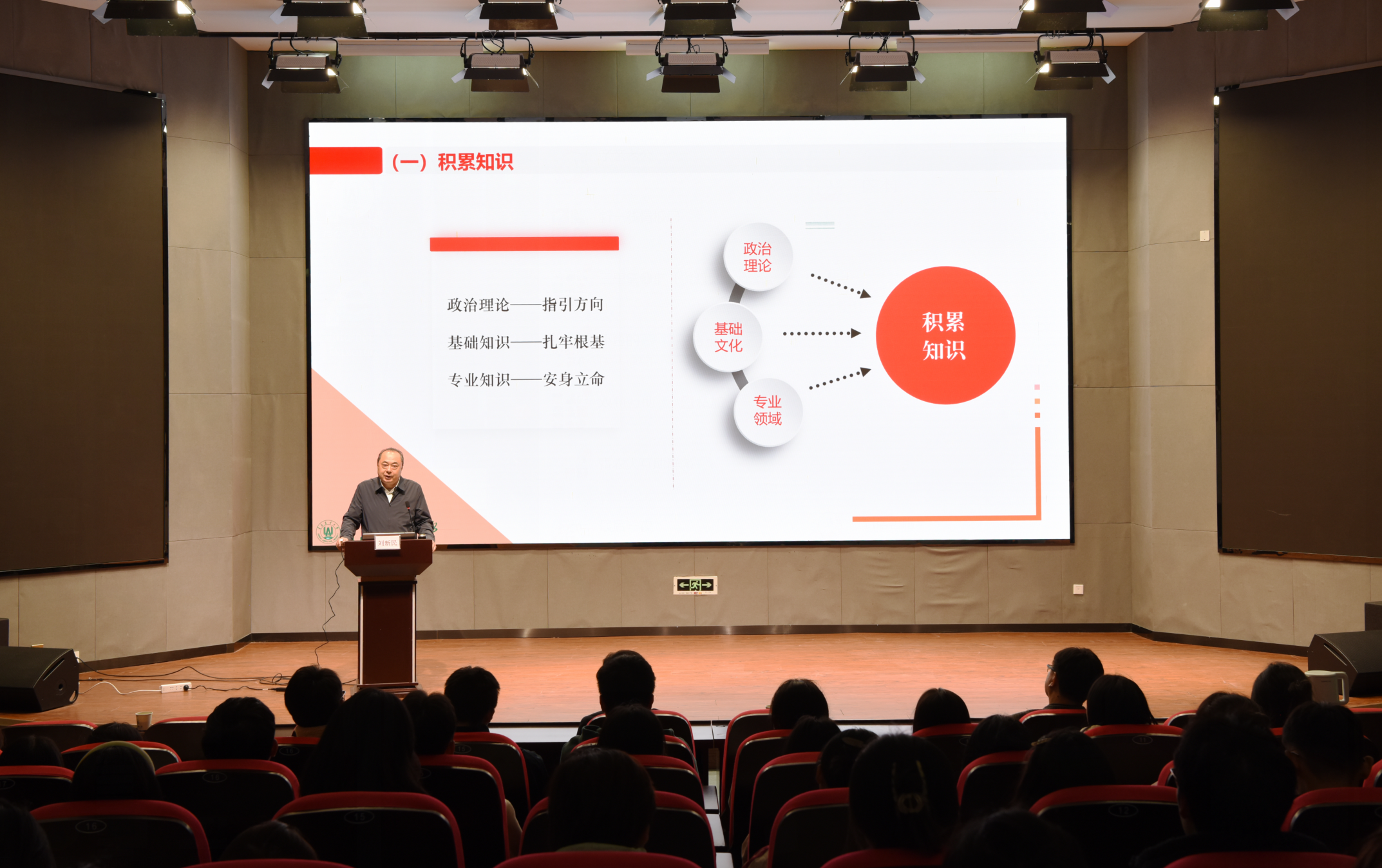 刘新民首先向同学们系统介绍了世界各国大学的发展历程、功能、任务,进而通过“九个有”详细介绍了我校的基本概况、学校发展史上的主要社会贡献、服务国家重大战略情况、学校发展历程、文化精神、杰出校友以及雄厚的师资力量,助力同学们尽快完成从高中到大学的角色转变,增强对学校的归属感和自豪感。他从“大学是什么:立身以立学为先,立学以读书为本”、“金年会jinnianhuicom是一所什么样的大学:以立德树人为根本,以强农兴农为己任”、“大学学什么:立志宜思真品格,读书须尽苦功夫”、“大学生要干什么:少年易老学难成,一寸光阴不可轻”等方面展开,深入阐述了作为一名大学生应当牢固树立坚定的理想信念,需要勇于承担社会责任。