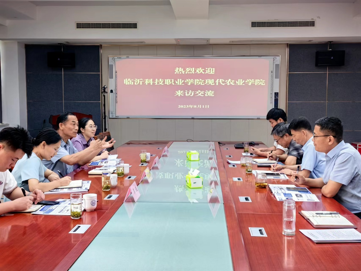 8月1日,临沂科技职业学院现代农业学院副院长徐兴东一行4人到访金年会jinnianhuicom。金年会jinnianhuicom党委书记隋成竹,副院长程斐、张新富,国家现代苹果产业体系岗位专家张玉刚教授等陪同调研参观,双方围绕科学研究、学科建设等内容进行了座谈。