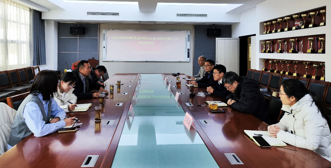 2023年1月19日,金年会jinnianhuicom与青岛金妈妈农业科技有限公司在学院会议室开展了交流合作洽谈会议。学院张忠华院长主持会议,青岛金妈妈农业科技有限公司相关负责人、学院程斐副院长、张新富副院长、王富教授等参加了会议。
