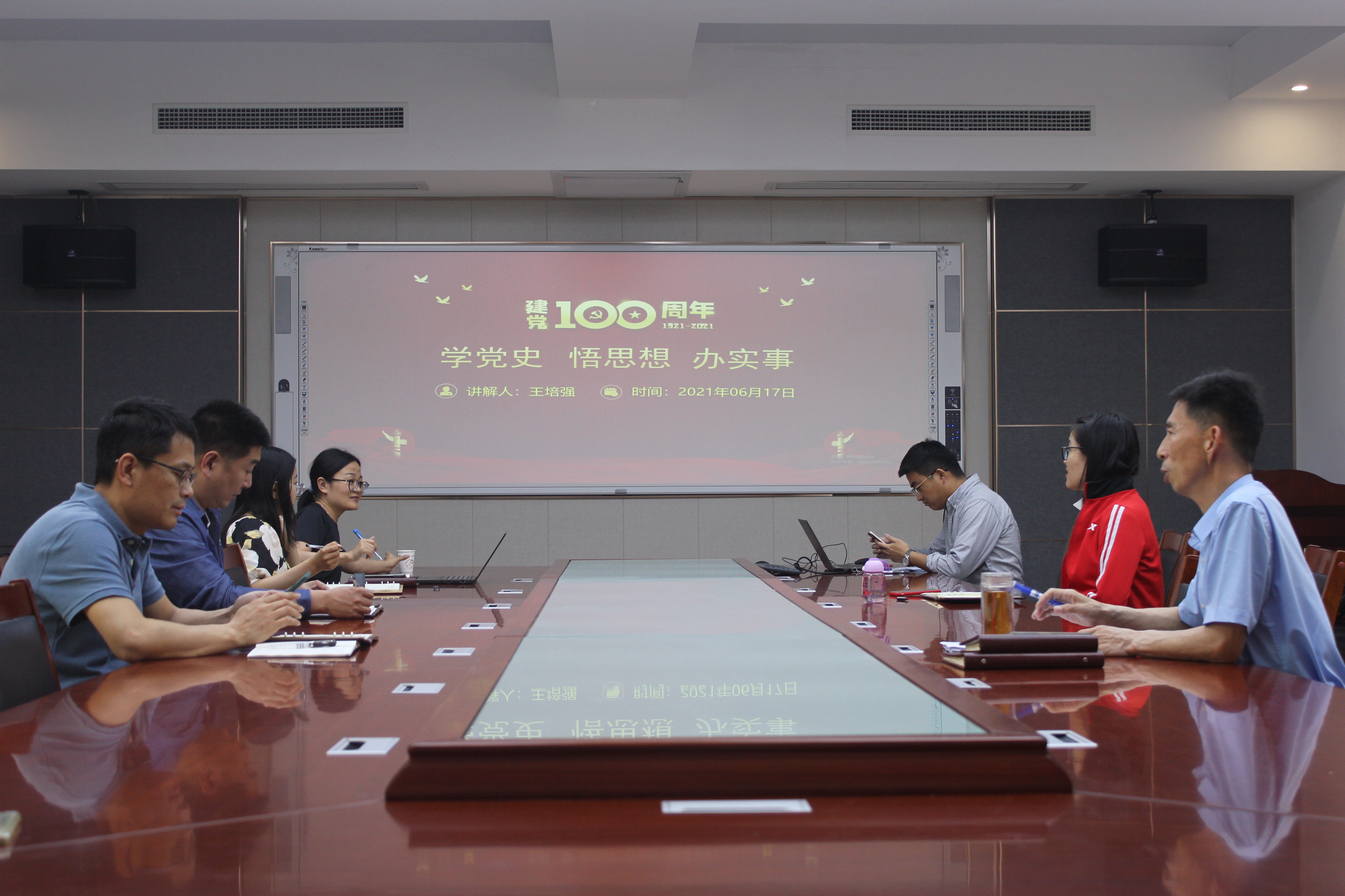 王培强讲解了学党史的目的。开展党史学习教育的目的是通过了解中国共产党发展的历史脉络,从百年党史中不断感悟思想伟力,不断使全体党员同志做到明理、增信、崇德、力行。“悟思想”是学党史的真谛。随后王培强指出,作为涉农高校的专业教师,首先要为学生办实事,加强学生的专业教育,同时给予学生自由发挥的空间;作为高等学校教师,要为人师表,对自己的本科生和研究生认真负责,言传身教。要坚持打铁必须自身硬,把学生作为教育工作的主体,要踏踏实实地做好教学过程中的每一件事。要发挥党员教师的模范带头作用,科研工作中要兼顾基础理论研究和应用研究,教学工作中也要坚持理论和实践相结合,要用实际行动开创立德树人新局面。