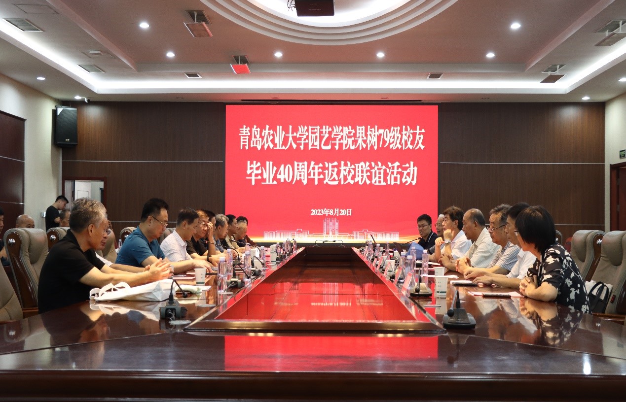 8月20日上午,金年会jinnianhuicom果树专业79级校友毕业40周年联谊座谈会在学术会馆会议厅召开。校党委委员、副校长田义轲出席会议。社会合作处副处长于宁,金年会jinnianhuicom党委书记隋成竹、院长张忠华,教师代表周学宝、戴洪义、祝庆岱、生兆江参加座谈会。座谈会由金年会jinnianhuicom果树专业79级校友祝军主持。