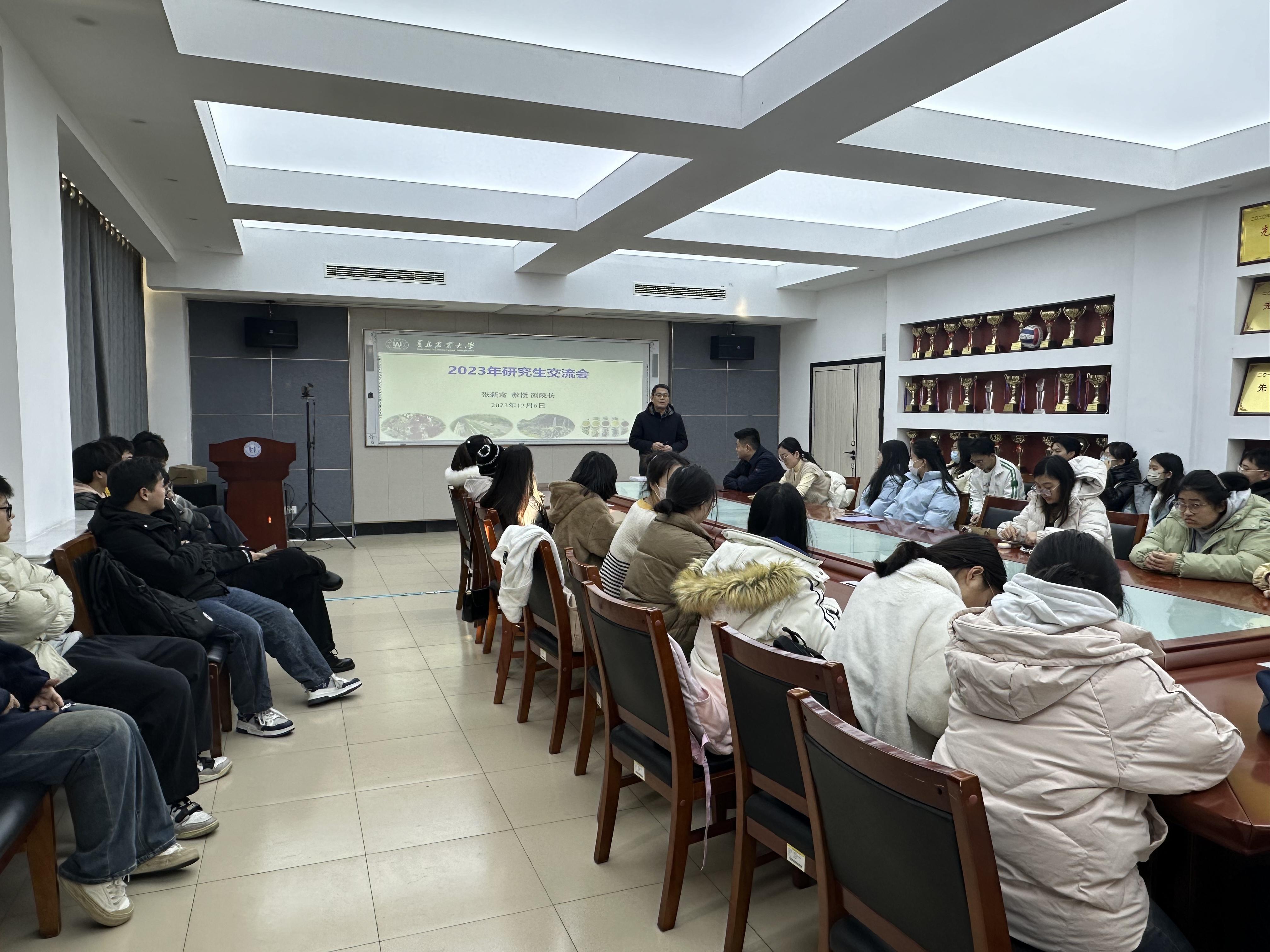 会上,张新富针对研究生学业规划提出五点建议:一是要正确实现从本科生向研究生的角色转变,学会思考与交流。二是要有严谨的科研态度,要认真开展实验研究并做好记录,学会写论文,具备独立开展研究的能力。三是要踏实开展理论学习,充分利用各类学习资源,打好专业课基础。四是要注重专业实践,积极参加学术会议与讲座,结合专业所学,深入生产一线,争做学术“小牛人”。五是要有乐观健康的生活,保持豁达的心态,保证健康的身体,才能更轻松高效地进行学习和生活。