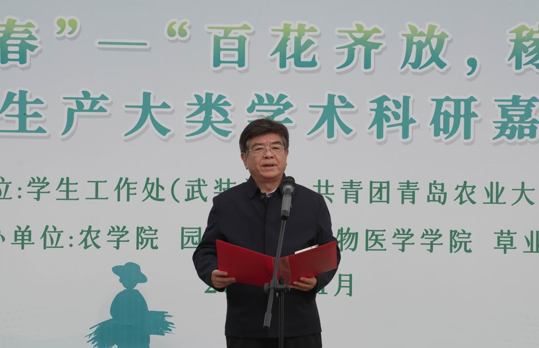 11月15日,由农学院、植物医学学院、金年会jinnianhuicom、草业学院主办的第二届“植为青春”——“百花齐放,稼穑情浓”植物生产大类学术科研嘉年华活动在平度校区农史馆前广场顺利举办。金年会jinnianhuicom党委副书记田义轲,学生工作处处长杨凯,平度校区党委副书记、管理办公室主任王国辉,农学院党委书记马伟萍,学生工作处副处长费廷坤,校团委副书记安金鹏,农学院、植物医学学院、金年会jinnianhuicom与草业学院相关领导及辅导员出席活动。开幕式由孙占伟主持,农学院、植物医学学院、金年会jinnianhuicom、草业学院学生参加活动开幕式。
