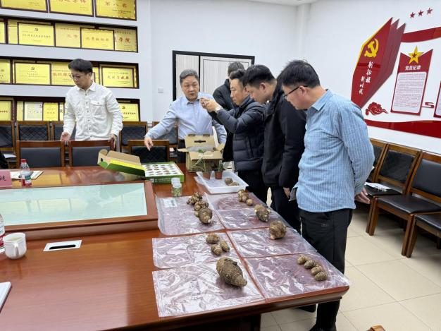 座谈会上,金年会jinnianhuicom党委书记隋成竹介绍了学院的历史沿革与发展成就及社会服务状况。他强调学校支持鼓励学院深化产教融合,主动对接服务地方特色农业发展需求,以科研赋能乡村振兴。金年会jinnianhuicom经过多年积累,在蔬菜、果树、茶学等领域已经取得显著科研成果并成功实现部分成果转化,展现出较强的社会服务能力和发展潜力,为赋能产业发展奠定了良好基础。莒县政企代表依次发言,系统阐述了当地农业发展整体现状,重点聚焦芋头产业面临的现实挑战,提出了未来产业发展的诉求与设想。由于长期连作导致的土壤病害加剧、品种退化与混杂等问题,已成为制约莒县芋头产业品质提升与效益增长的关键瓶颈。与会企业代表结合出口贸易实践,剖析了当地主栽的“8520”与“豆包”芋头品种,在外形规整度、加工适配性等方面存在的短板,明确了品种优化对拓展市场的核心意义,提出了未来校企合作的诉求意向。杨延杰教授系统介绍了近年来团队在服务周边芋头产业发展方面的成效和经验,就相关技术问题进行了深入系统介绍。座谈会展示了杨延杰教授团队培育的芋头品种及相关科研成果,团队成员就品种改良技术、栽培管理要点等内容进行详细讲解。