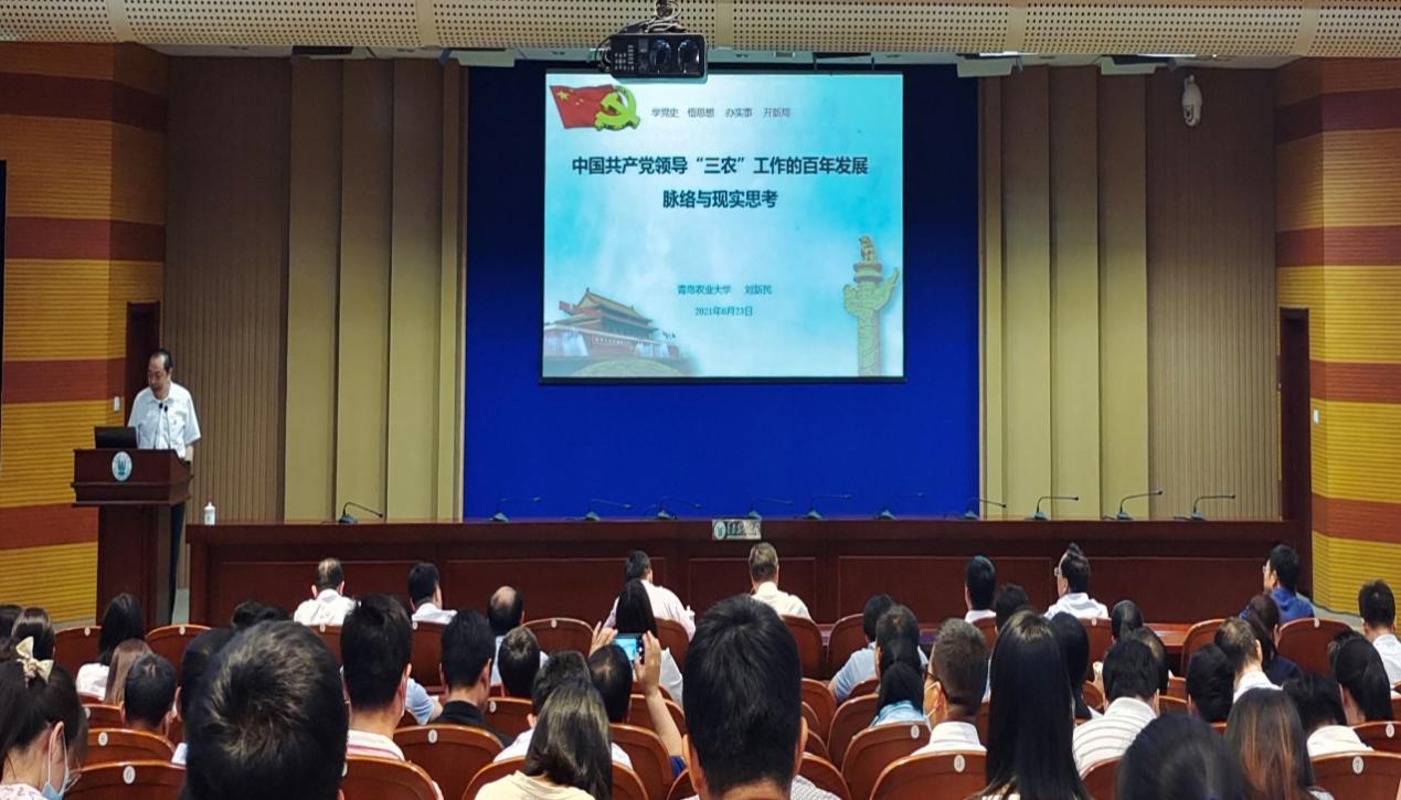 为扎实推进党史学习教育,促进广大教工党员通过党史学习教育做到明理、增信、崇德、力行,6月23日,金年会jinnianhuicom党委副书记、校长刘新民为发展规划处、科技处、审计处、财务处、研究生处及金年会jinnianhuicom、农学院全体教职工党员讲授《中国共产党领导“三农”工作的百年发展脉络与现实思考》主题党课。省委党史学习教育第二巡回指导组副组长唐勇、成员秦冠宇列席,主题党课由金年会jinnianhuicom党委书记隋成竹主持。