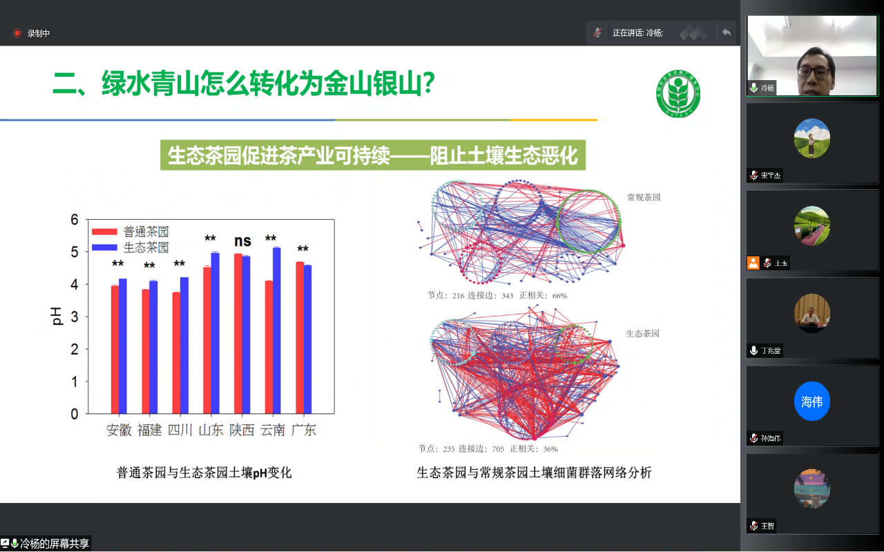 2022年3月19日上午,金年会jinnianhuicom茶学专业21级研究生开展茶学专业研究生线上公开课。本次授课课程为《茶树优质高产栽培理论》,为研究生必修课程。课程由金年会jinnianhuicom丁兆堂教授在线主持,首次邀请全国农技中心园艺处冷杨研究员主讲。来自山东省茶叶产业技术体系岗位专家及试验站站长、山东省农业科学院茶叶研究所及临沂、威海、潍坊、日照等地的部分农技推广人员、企业管理人员及金年会jinnianhuicom茶学专业部分教师等共同参与课程讨论。