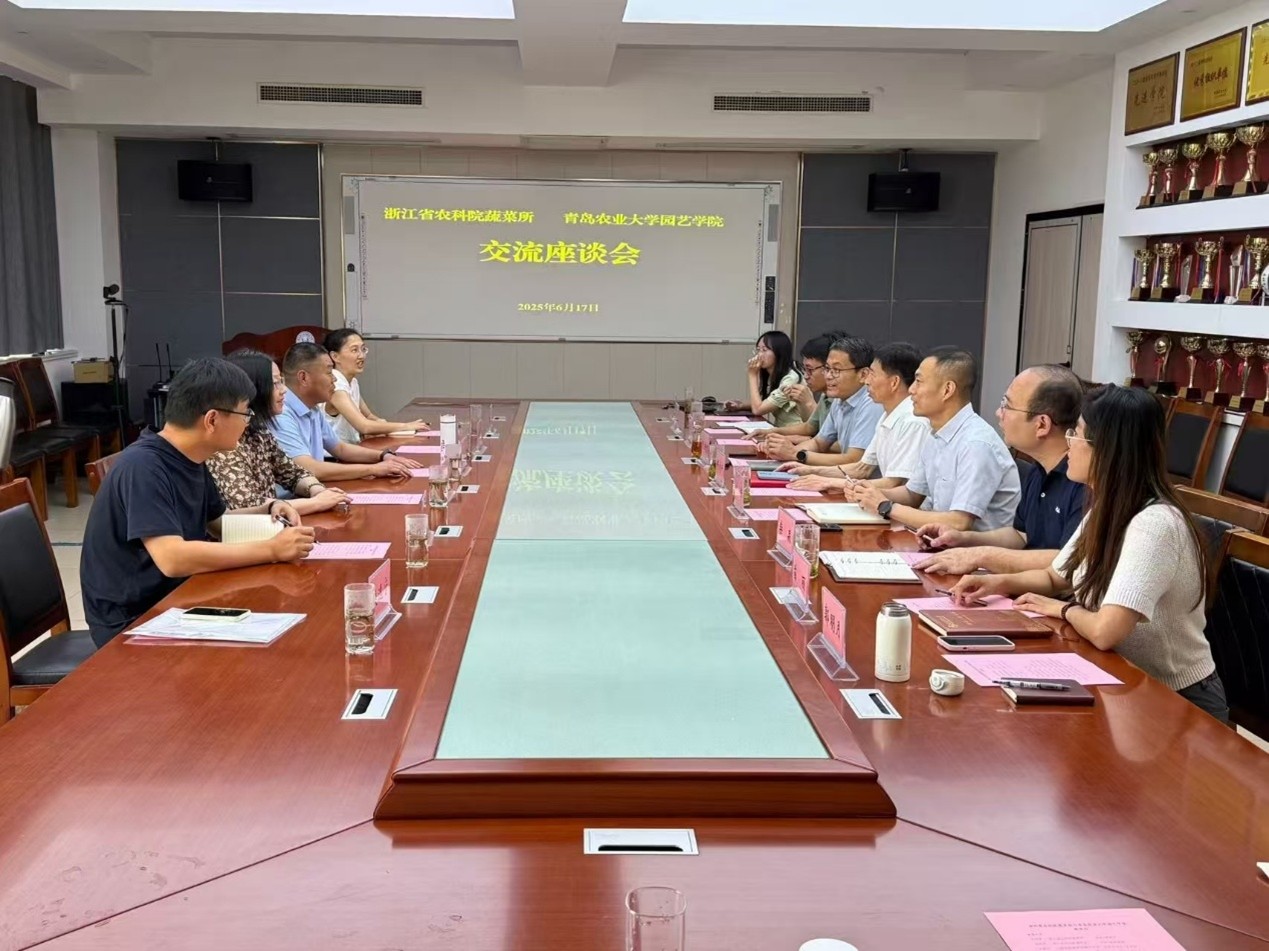 6月17日,浙江省农业科学院蔬菜研究所所长包崇来一行到访金年会jinnianhuicom,双方在生物楼N306会议室,就开展“十五五”规划专题调研工作、进一步加强合作协作进行座谈交流。金年会jinnianhuicom党委书记隋成竹、科技处副处长徐浩、金年会jinnianhuicom蔬菜学科负责人柴森以及蔬菜学科各团队成员参会。会议由金年会jinnianhuicom副院长张新富主持。