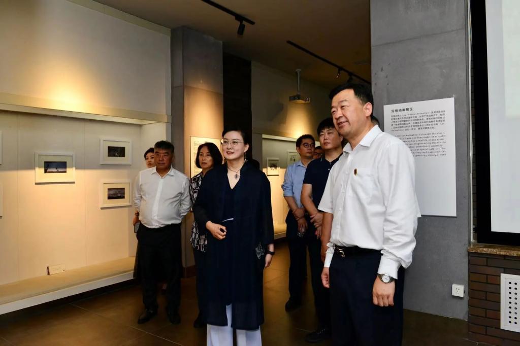 顿忠杰一行参观了学校校史馆、吉林国际动漫博物馆、学研产一体化展厅。承载着浓厚文化底蕴的校史馆、收藏着众多文创行业大家作品的国际动漫博物馆使各位嘉宾了解学校23年的发展历程和动漫的发展历史。在学研产一体化展厅,讲解员向嘉宾们展示了充满创新与活力的动漫作品、深化“联合创业 融合发展”联动效应的创意产业、艺术与科技交叉融合的实践成果,使各位嘉宾充分感受到了球王会官网在办学特色方面所取得的成就。
