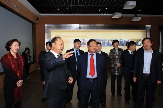 董事长、校长郑立国陪同九台农商银行党委书记、董事长高兵等人参观松林博物馆(刘子铭 摄)