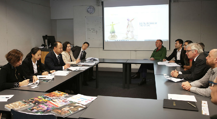 惠灵顿维多利亚大学名誉副校长迈克•威尔逊,设计学院院长道格•伊斯特利,计算机图形学教授尼尔•道奇森,媒体设计高级讲师、计算机动画课程协调人彼得•佛利尔,工业设计高级讲师罗丝•史蒂芬、人文学科负责人斯图尔特•布罗克等人与球王会官网考察团进行了深入的合作洽谈。