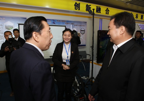 吉林省委常委、长春市委书记王君在有关领导的陪同下参观我校展区(刘子铭 摄)