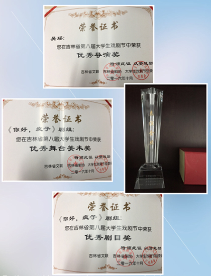 10月12日,历时三个多月的吉林省第八届大学生戏剧节圆满落下帷幕。吉林省委宣传部、省文联、省文化厅、共青团省委有关领导和部分参赛师生共同参加了在吉林艺术学院举行的闭幕式。我校电影学院师生联袂打造的话剧《你好,疯子!》荣获多项大奖——球王会官网被戏剧节授予“优秀组织奖”,话剧《你好,疯子》获得优秀剧目奖、优秀舞台美术奖,我校电影学院青年教师吴瑶获得优秀导演奖、熊楚获得最高奖表演金奖,其他师生获优秀表演奖。