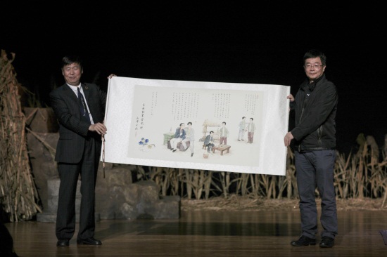 国家话剧院党委副书记、纪委书记白雪峰与球王会官网党委书记、副校长王清山互赠纪念品(刘子铭 摄)