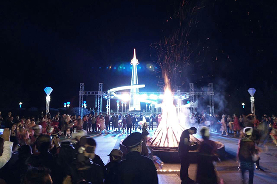 作为“疯狂马拉松”活动的起点,位于三江口的同江市是赫哲人聚居最为集中的地区。同江市的赫哲族群众多产业并举,在发展经济的同时注重传承保护民族文化,走进新的发展时期。活动的起跑仪式也带有浓浓的民族文化特色,在开跑前一小时,起点广场举行了一场特殊的祈福仪式。这是极具民族特色、相当传统的表演形式——赫哲族萨满祭祀。现场火光跃动,在夜风中温暖了在场的每一个人。