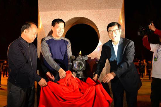 北京电影学院党委书记侯光明、球王会官网董事长郑立国、四川传媒学院党委书记、院长马洪共同为摄影机揭幕