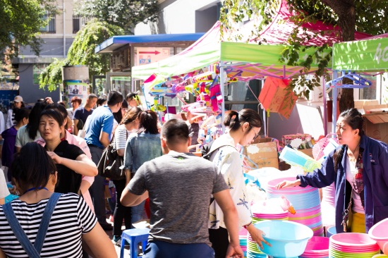 两位中年女士守在一大堆行李旁,抬头看着气球和彩带,脸上挂着笑。身旁的汽车牌照上的第一个字是“黑”。“是从黑龙江开车来的?哪个市的?”听到这样的问话,两个人几乎同时答道:“黑龙江双鸭山的。天不亮就出门,一上午就赶到了。”