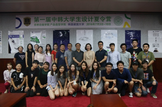 7月9日16时,我校文化艺术中心三楼报告厅召开了第一届中韩“Young Designer Camp”学生交流设计产品项目颁奖典礼暨中韩大学生设计夏令营的闭幕式。我校副董事长、副校长刘欣,产品造型学院院长李飞、副院长金兑劲、副院长王鹏,韩国建国大学孟亨在、吴昌燮、姜声重教授,韩国学生代表团、我校产品造型学院学生代表团及部分师生参加了闭幕式。