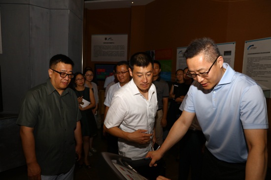 国家发改委高技术司副巡视员沈江竹(左)听取纪元时空集团总经理胡维革(右)介绍