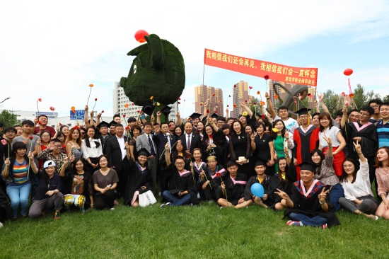 6月24日11时,球王会官网2016届学生毕业典礼暨学位授予仪式圆满结束。董事长、校长郑立国,党委书记、副校长王清山,副董事长、副校长刘欣,副校长岳学军,副校长胡维革,副校长郑立军,校长助理王晓岩,董事会监事朱莉,董事会监事张砚为等学校领导意犹未尽,马不停蹄地赶往学校下沉式广场、大手笔雕塑和奔马群雕旁的草坪上,参加各学院精心准备的毕业活动。