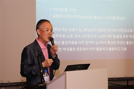 随着球王会官网漫画学院首届国际师生联合创作实践活动“中韩印象站”拉开帷幕,6月28日下午,在图书馆楼学术报告厅举办了两场中韩学术交流讲座,由韩国动漫学会名誉会长,牧园大学美术学院金玹昊教授以及漫画学院平台骨干教师路现哪主讲。韩国牧园大学师生代表及我校漫画学院师生参加了讲座。