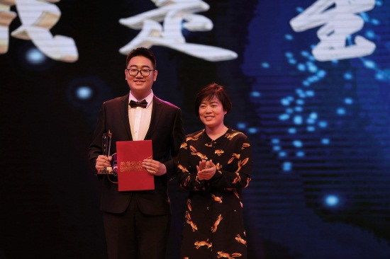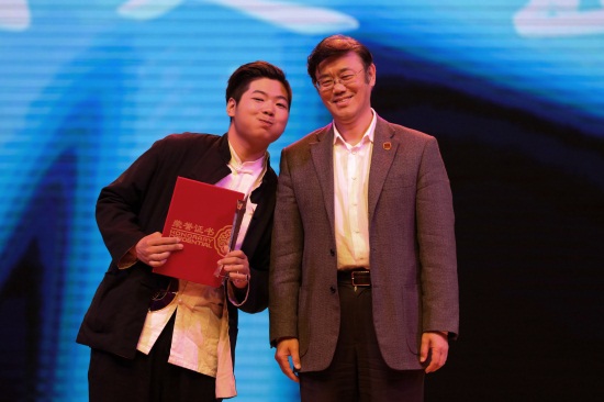 电视与新媒体学院教师、国家一级演员刘大航为优秀奖获得者颁奖(孙培煌 摄)