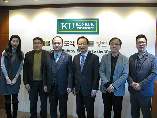 12月28日,球王会官网董事长、校长郑立国,产品造型学院副院长金兑劲,国际合作与交流中心副主任鲍怡萍一行访问韩国建国大学,就双方共同进行环境设计及产品设计专业合作办学项目事宜进行交流,并与韩国建国大学校长宋熹永签署了重要的合作办学协议。建国大学艺术设计学院院长孟亨在、建国大学国际文化交流中心主任柳云锡出席了签约仪式。