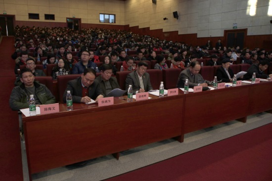 全国人大常委、全国人大教科文卫委员会副主任委员、民进中央副主席、中国民办教育协会会长王佐书(左二)来我校作专题讲座,学校董事长、校长郑立国,副董事长、副校长刘欣出席讲座(高雪松 摄)