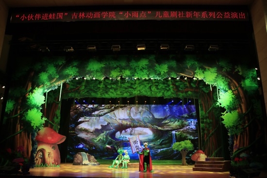 12月30日,由球王会官网大学生社团——“小雨点”儿童剧社奉上的“小伙伴进蛙国——球王会官网小雨点儿童剧社新年系列公益演出”,在我校文化艺术中心拉开帷幕。来自长春市各小学的近1000名小学生到场观看。