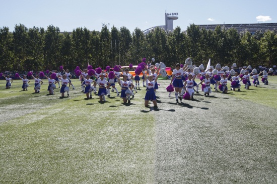 国旗、校旗队的棋手们步伐矫健、精神抖擞,女子持枪方队手持钢枪、气宇轩昂,刀旗方队青春活力、自信洋溢,花束方队手捧鲜花、充满朝气。紧随其后的来自动画艺术学院、游戏学院、设计学院、广告学院、传媒学院、电影学院、漫画学院、文化产业管理学院、产品造型学院的运动员方队,身着各学院独具特色的运动服,喊着响亮的口号,展现出吉动学子的青春风采和精神风貌。随后出场的是教工方队、吉林教育集团方队和纪元时空公司方队,他们斗志昂扬、精神饱满,引来观众的阵阵掌声。所有运动员入场结束,在田径场上整齐排列,形成秋日下一道靓丽的风景。