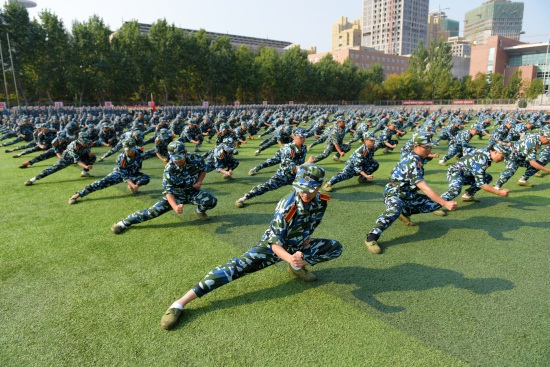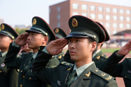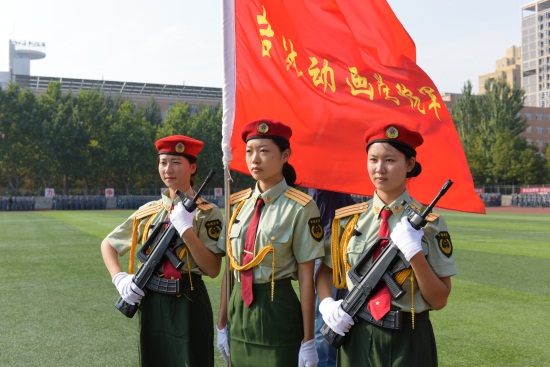 漫画学院用威武的军姿和嘹亮的口号,展示了他们军训的成果。