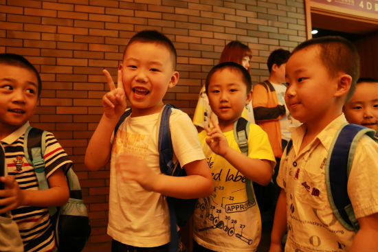 小朋友们看完《长白精灵》动画片非常高兴 陈云鹏摄
