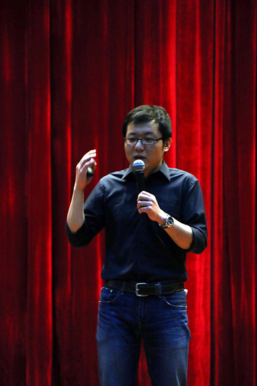 杜振光从平台流程、工作地点、工作时间、学习时间,还有校内实践平台项目研发的程序、策划、美术应用等方面,向同学们进行了详细地介绍。
